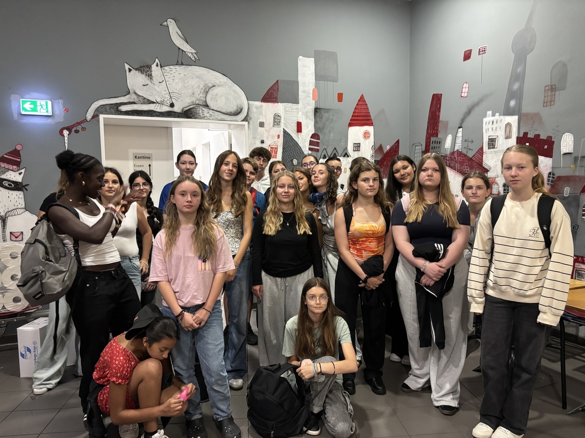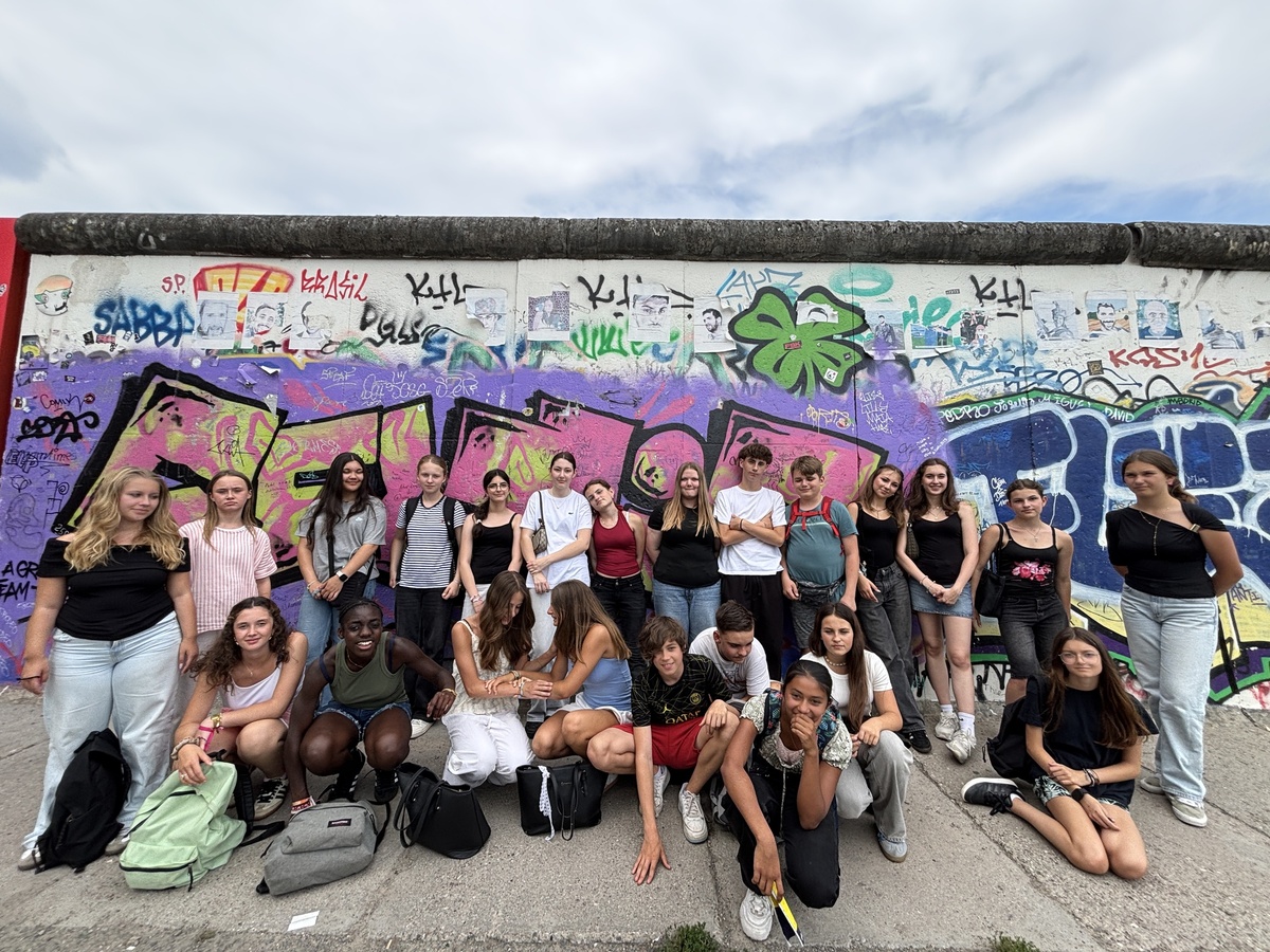 Ein erstes Treffen hatte im April in Caen stattgefunden, wo die Jugendlichen sich mit der Landung der Alliierten in der Normandie und deren Folgen auseinandersetzten. Ende Juli trafen sich beide Gruppen in Berlin, einem idealen Ort, um Ursachen und Folgen des Naziregimes zu erkunden. Es wurden viele geschichtsträchtige Orte besucht, darunter das Liebermannhaus am Pariser Platz, das zu Beginn des 20. Jahrhunderts von dem jüdischen Maler Max Liebermann und seiner Ehefrau Martha bewohnt wurde. Liebermann verstarb im Jahr 1935, seine Frau Martha verübte am Vortag ihrer Deportation nach Theresienstadt Selbstmord. Sie war eines von sechs Millionen Opfern des Nationalsozialismus, für die das Holocaust-Mahnmal errichtet wurde. Unzählige jüdische Kinder wurden in Vernichtungslager Richtung Osten transportiert. Zehntausend von ihnen hatten die Chance, nach England auszureisen und damit dem sicheren Tod zu entrinnen. Das Denkmal „Züge in das Leben – Züge in den Tod 1938–1939“ am Bahnhof Friedrichstraße erinnert an diese Kindertransporte während der NS-Zeit. Auch zu DDR-Zeiten wurden Menschenrechte missachtet. Die Kreuze zwischen Brandenburger Tor und Bundestag stehen zum Gedenken an die Mauertoten, die vergeblich versuchten, das Land zu verlassen. Schauplatz vieler emotionaler Abschiede während des Kalten Krieges war der Tränenpalast. Das Alliiertenmuseum erinnert an die Besatzungszeit durch die Siegermächte nach dem Zweiten Weltkrieg. Hochinteressant die zahlreichen Exponate: der Spionagetunnel, eine Hastings, die während der Berlinblockade zum Einsatz kam, um die Westberliner Bevölkerung aus der Luft zu versorgen, und der Waggon des französischen Militärzuges. Auch die Führung an der Gedenkstätte Berliner Mauer hinterließ einen bleibenden Eindruck bei den Jugendlichen. Welch perfides System, um eine ganze Bevölkerung einzusperren und ihrer Freiheit zu berauben. Wesentlich entspannter und fröhlicher gestaltete sich der Besuch der Eastside Gallery, des längsten noch erhaltenen Abschnitts der Berliner Mauer. Ein sehenswertes Schauspiel war die Lichtprojektion am Elisabeth-Lüders-Haus im Parlamentsviertel. Ebenso beeindruckend war die Führung durch das Museum der Blindenwerkstatt Otto Weidt, der viele jüdische Mitbürger vor dem sicheren Tod rettete. Der Austausch über Begriffe wie Freiheit, Frieden, aber auch Trauer und Verlust und ihre künstlerische Umsetzung in Graffitis rundeten das Programm ab. Gemeinsames Bummeln und Shopping am Alexanderplatz und Potsdamer Platz machten den Austausch perfekt. Die Webseite zum Projekt findet man unter folgendem Link: austausch2025.wordpress.com. Wir bedanken uns beim Deutsch-Französischen Jugendwerk, beim Bezirk Unterfranken und beim Deutsch-Französischen Club Miltenberg für die finanzielle Unterstützung.